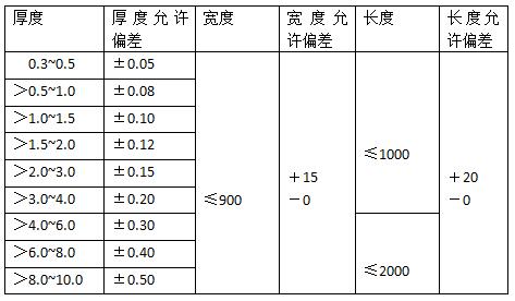 4 允許順軋制方向清除局部缺陷,但清理后的板材厚度不得小于較小允許厚度。