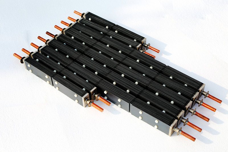陽(yáng)極材料可以選用涂層鈦電極。混合氧化物涂層鈦陽(yáng)極,使用壽命長(zhǎng),此種涂層鈦陽(yáng)極的過(guò)電位也比較低,析氯電流效率高,節(jié)能效果好。